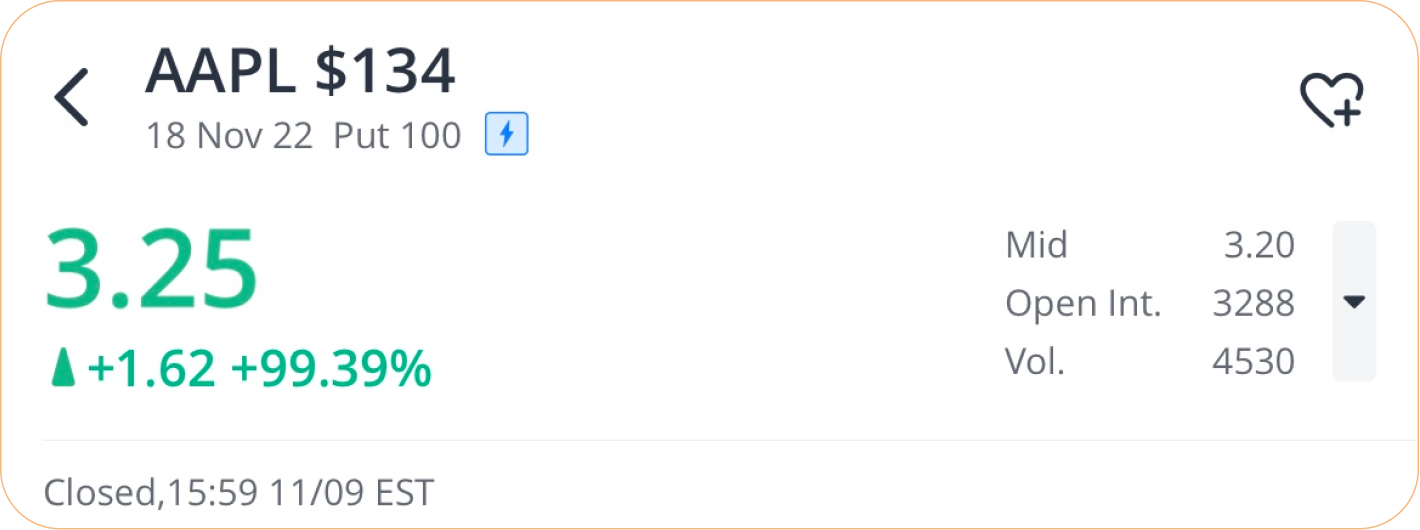 值得注意的,未平倉合約不是即時交易數據,而交易量是即時計算的。 未平倉合約有大約7個鐘頭的滯後,因為期權清算公司( OCC )僅在市場收盤後核算未平倉數。 例如,假設您在交易時段內查看以下期權合約的報價詳情,顯示3,288的未平倉合約是告訴您在前一個交易日收盤時有多少未平倉數。 為了方便投資者了解真實行情,美股收盤後不到1個鐘頭,微牛會展示該交易日的真實未平倉合約。